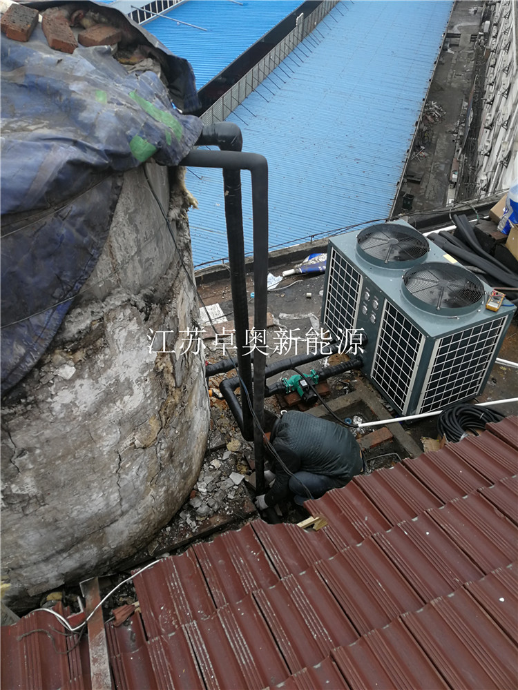 錫通物流賓館原本鍋爐燒水,現鍋爐已經拆除,增加一臺15匹空氣能熱水機組,2個9KW電加熱,保證了每天24小時熱水供應。