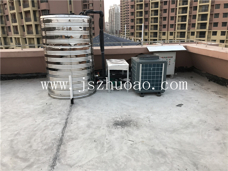 工程介紹:一臺(tái)3匹商用空氣能主機(jī),一臺(tái)1噸保溫水箱